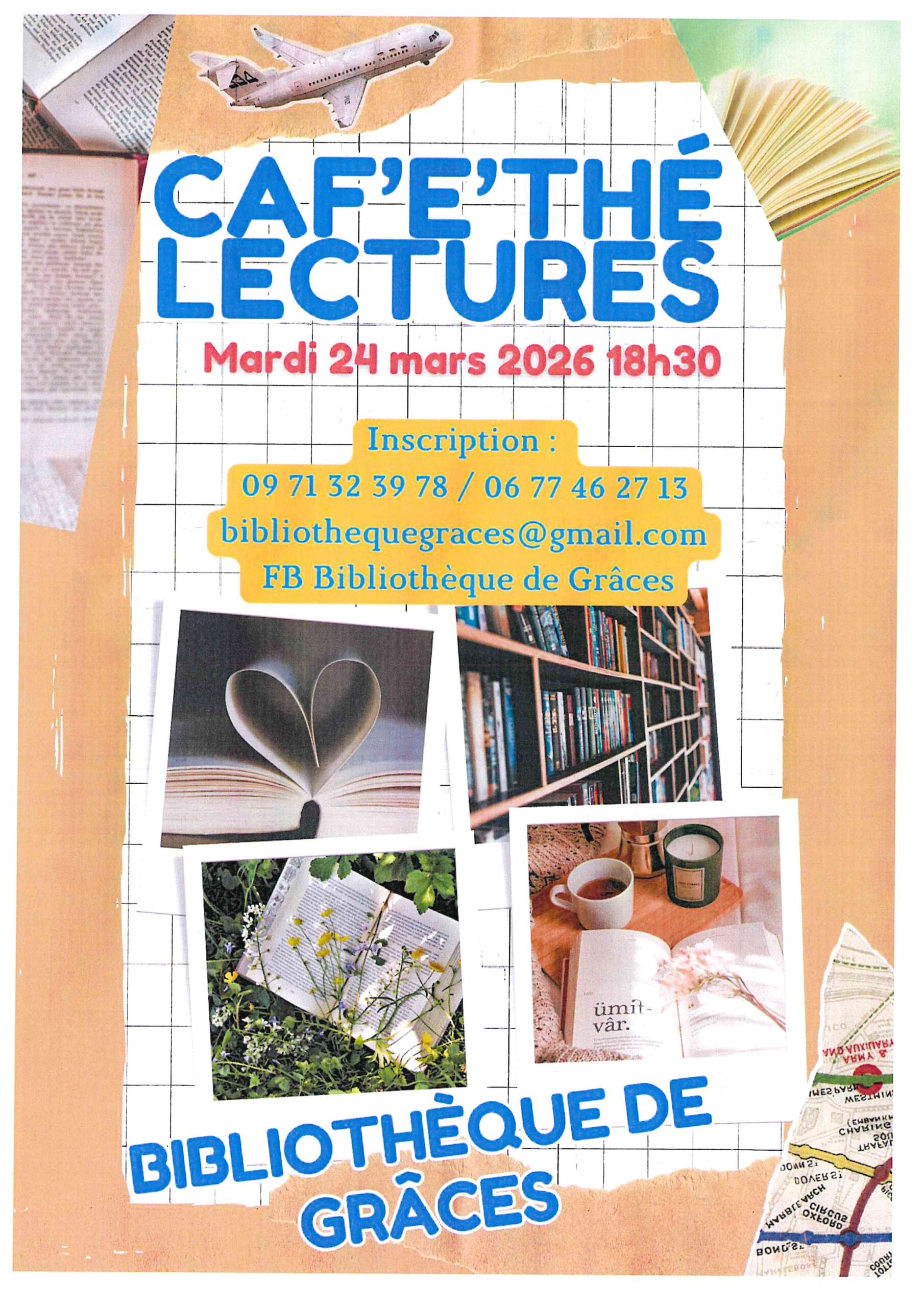 Accueil / Bibliothèque : Caf’e’Thé’Lectures mardi 24 mars 18h30 Inscription au 06 77 46 27 13