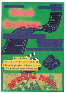Bibliothèque : Ciné goûter mercredi 10 décembre de 14h45 à 16h45. Inscription 06 77 46 27 13