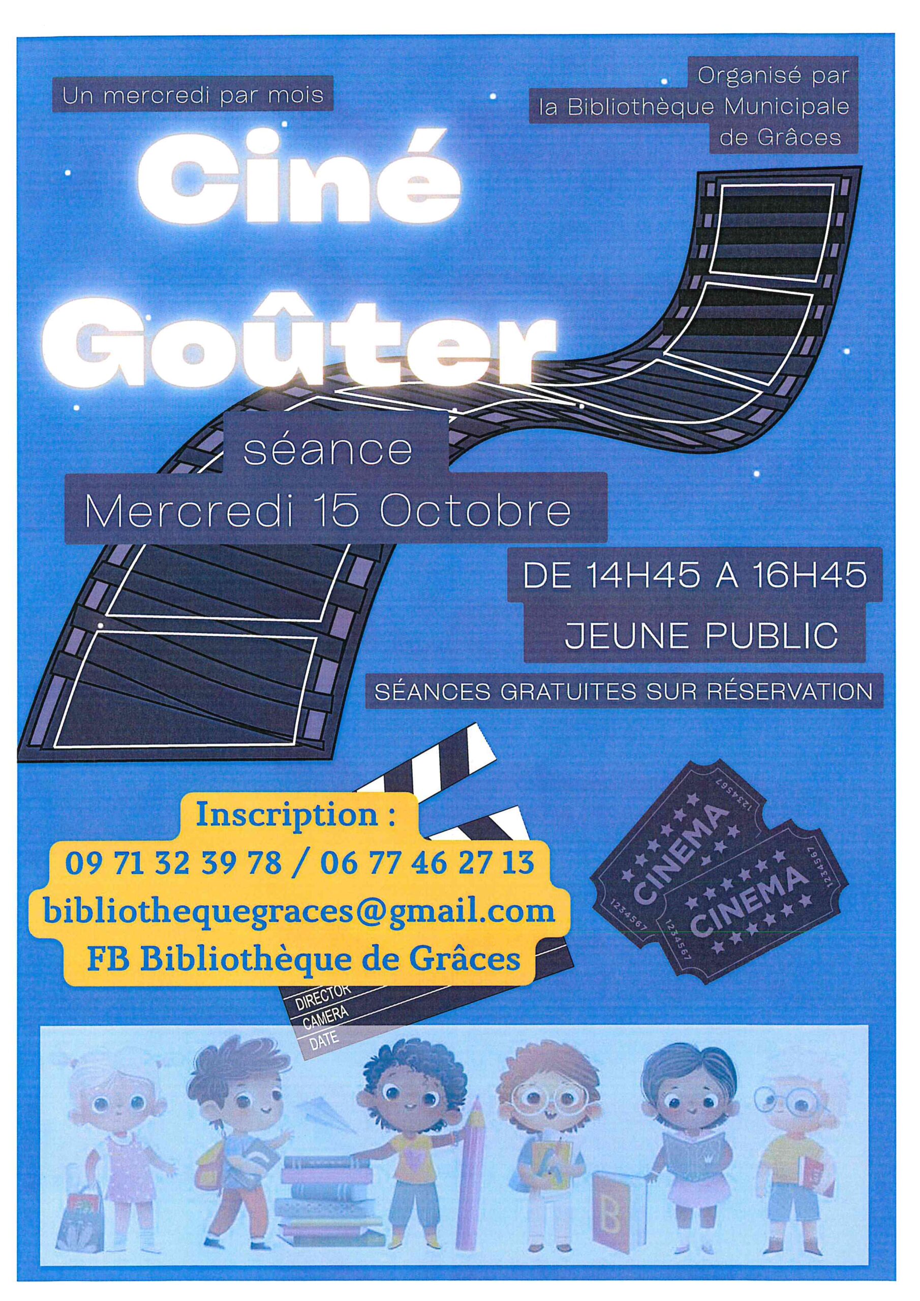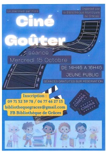 Accueil / Ciné Goûter à la bibliothèque mercredi 15 octobre de 14h45 à 16h45. Inscription 06 77 46 27 13