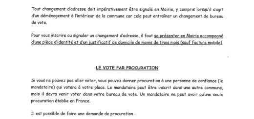 • Élections municipales : Inscriptions sur la liste électorale jusqu’au 6 février en mairie, jusqu’au 4 février en ligne. Pensez au vote par procuration