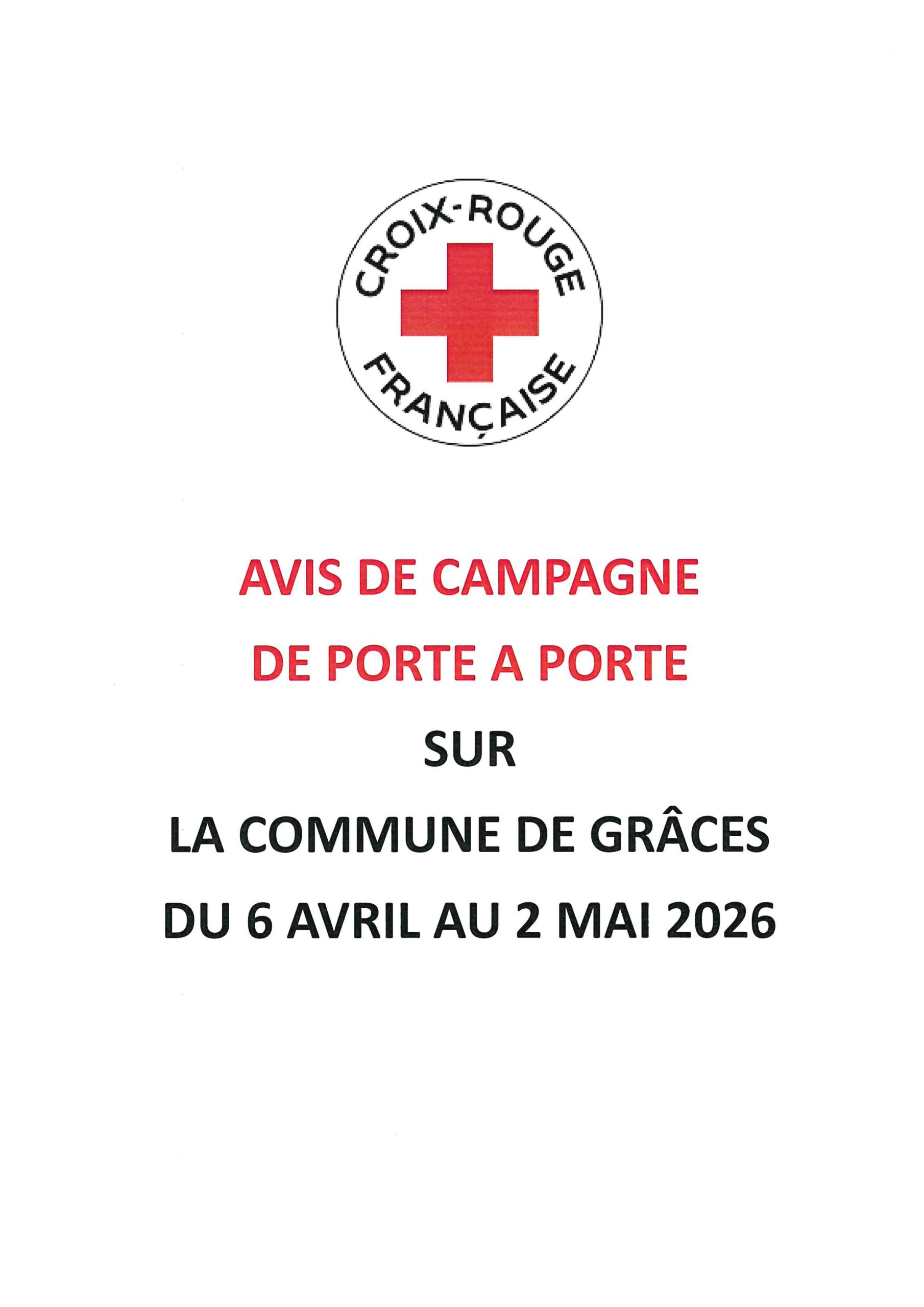 Accueil / Croix Rouge Française : Avis de campagne de porte à porte sur la commune du 6 avril au 2 mai 2026