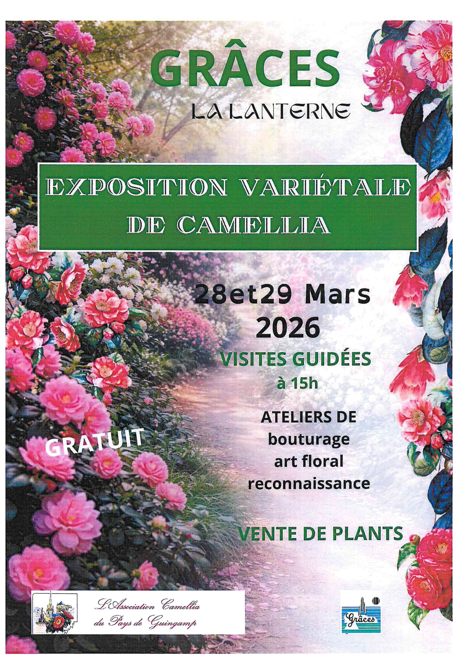 Exposition variétale de Caméllias 28 et 29 mars Salle la Lanterne, visite guidée, ateliers, vente de plans