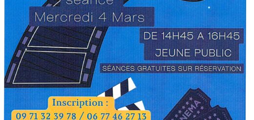 • Bibliothèque : Ciné goûter mercredi 4 mars 14h45 / 16h45 jeune public sur réservation au 06 77 46 27 13