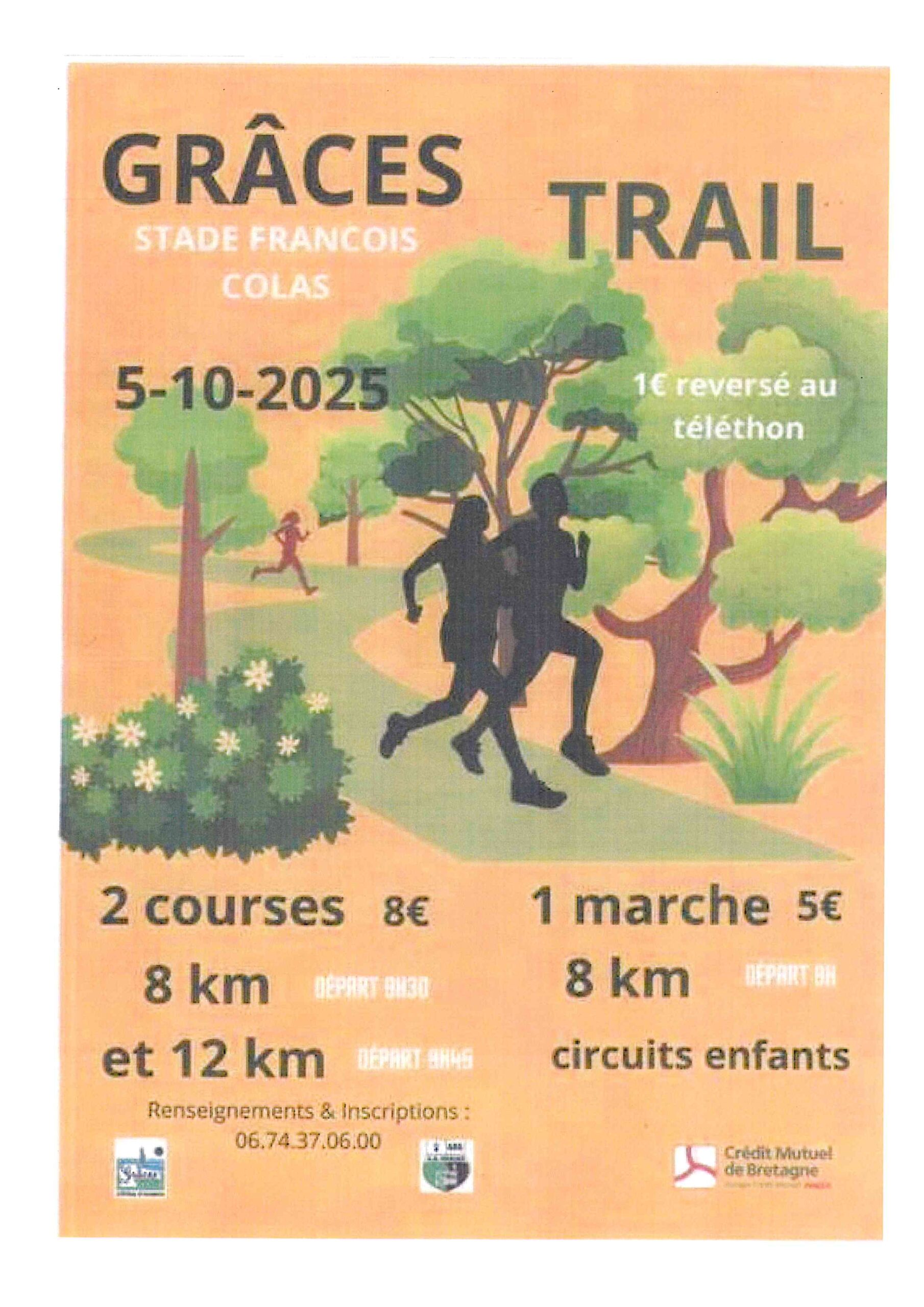 Grâces Trail, organisé par Grâces Animation et AS Grâces le 5 octobre 2025. Parcours de 8 et 12 km. Inscription au 06.74.37.06.00
