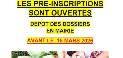 • Article précédent Les pré-inscriptions pour le centre de loisirs de cet été (du 6 au 31 juillet 2026) sont ouvertes en mairie. Dossiers à déposer en mairie avant le 15 mars