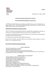 Préfecture : Vigilance jaune vent violent du mercredi 11 février 22h au jeudi 12 février 2026 à 5h00