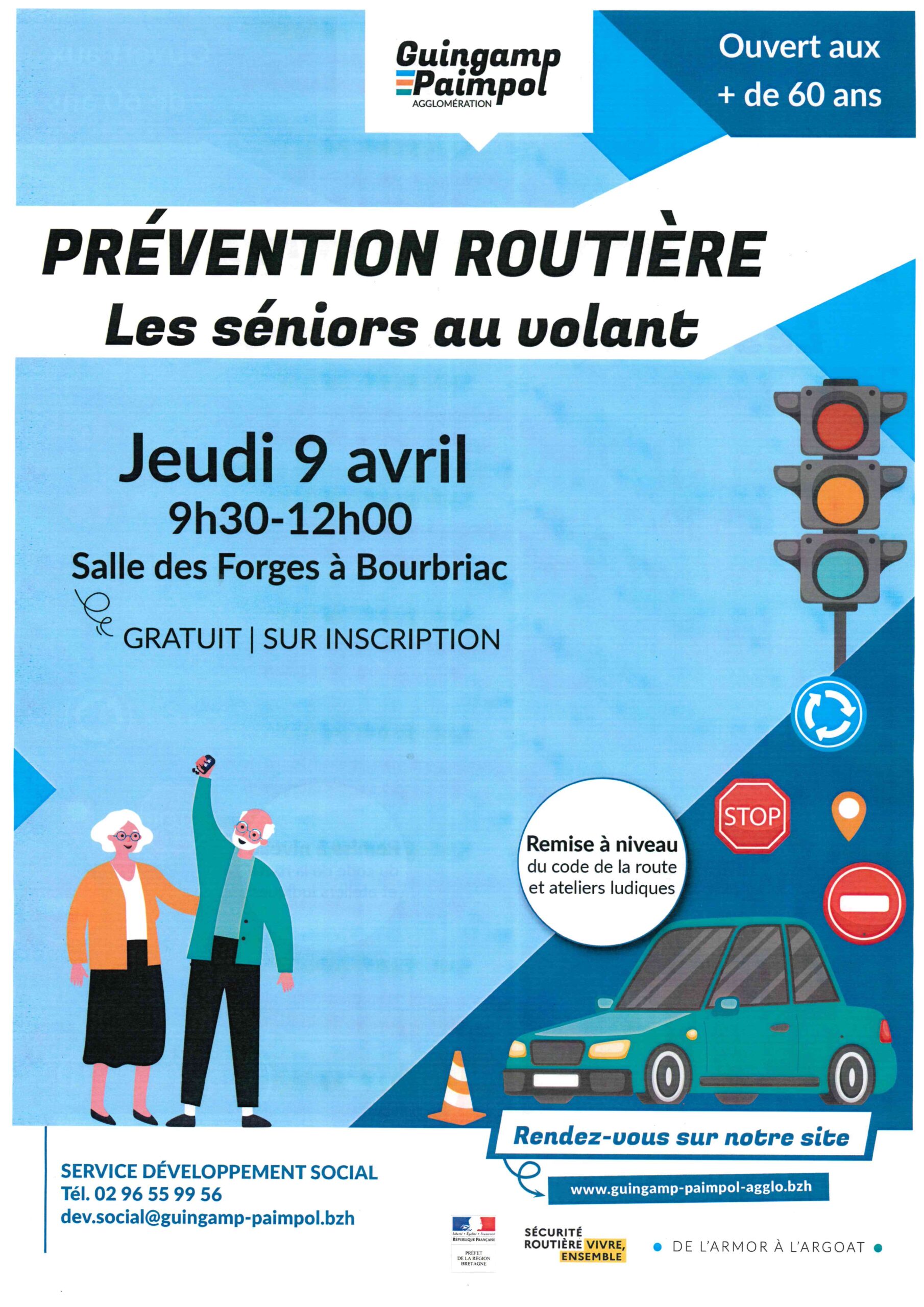 Accueil / Prévention routière « Les seniors au volant » jeudi 9 avril 9h30 – 12h00 Salle des Forges à Bourbriac