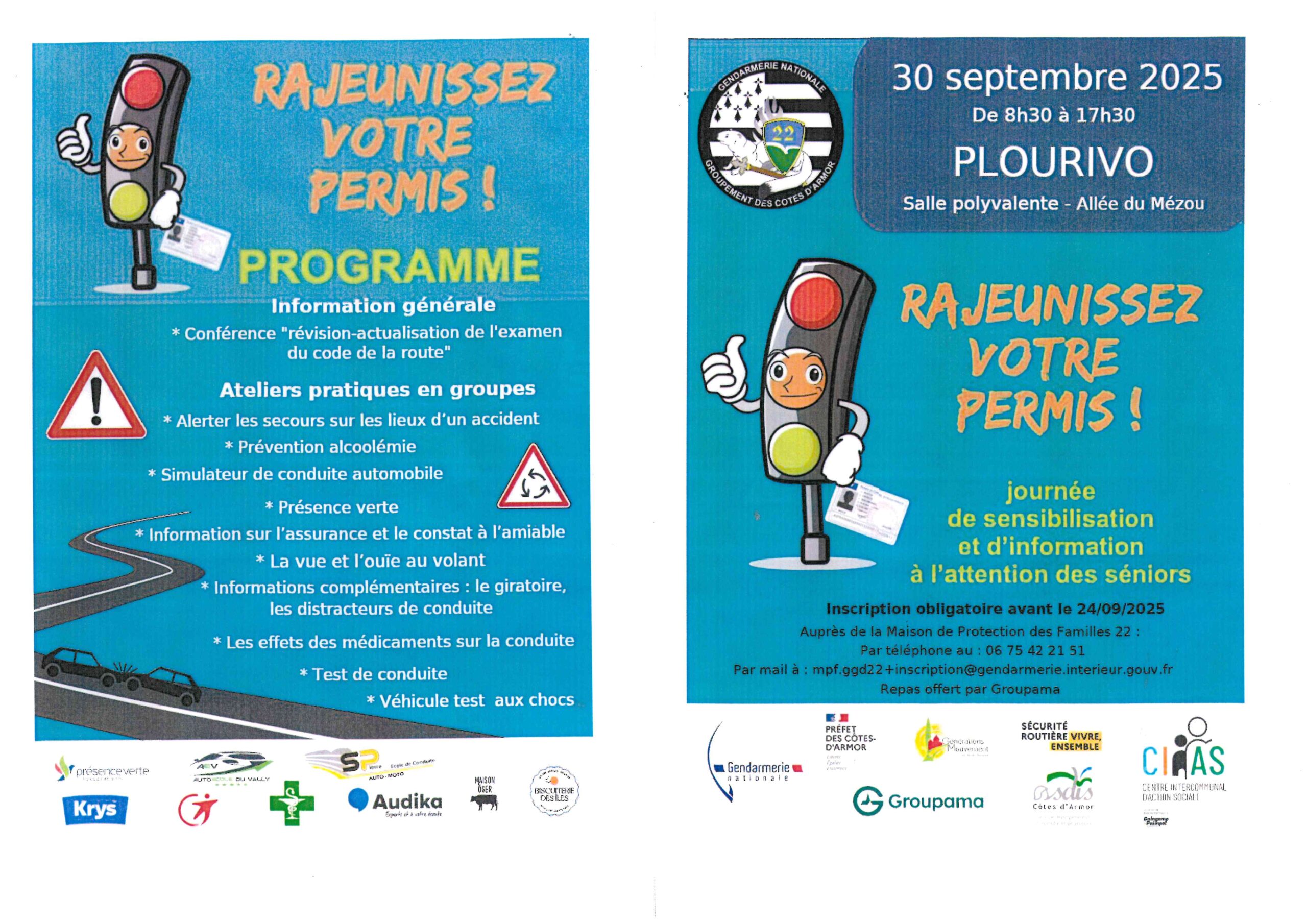 Accueil / Rajeunissez votre permis : 30 septembre de 8h30 à 17h30 à Plourivo. Inscription avant le 24/09/2025 au 06 75 42 21 51