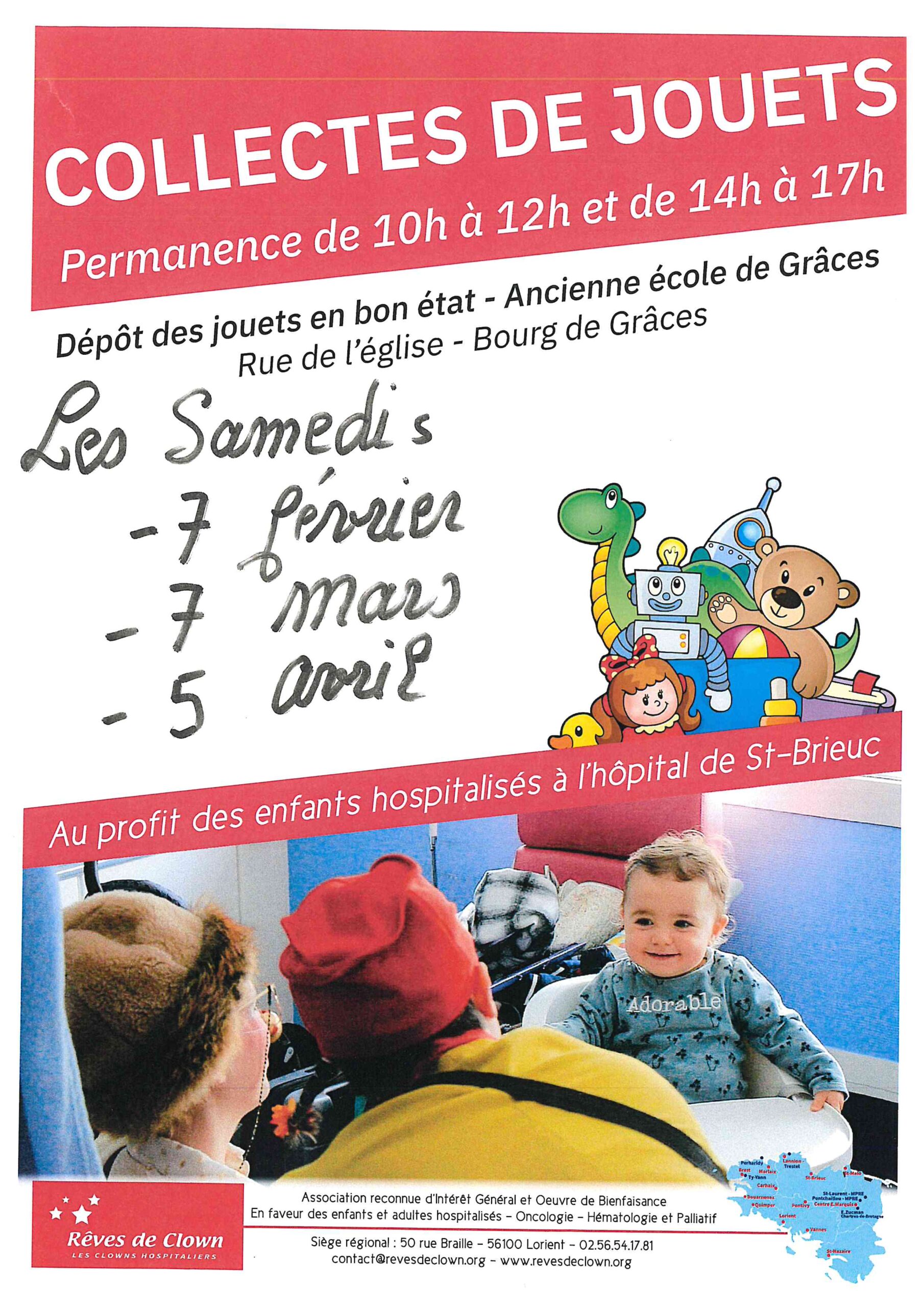 Accueil / Rêves de Clown : Collecte de jouets les samedis 7.02.26, 7.03.26 et 05.04.26 de 10h à 12h et de 14h à 17h dépôt à l’ancienne école élémentaire