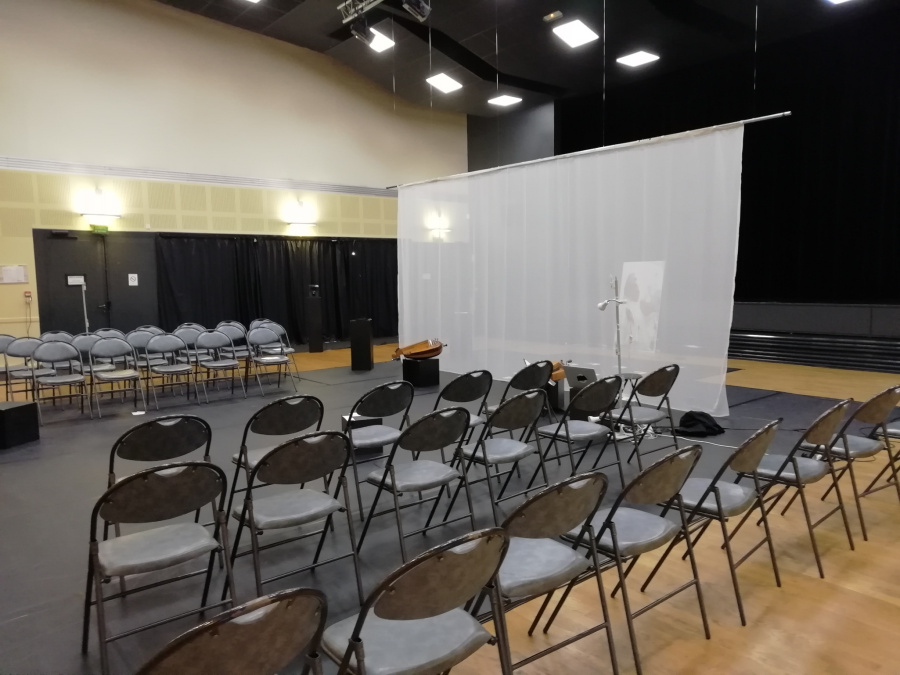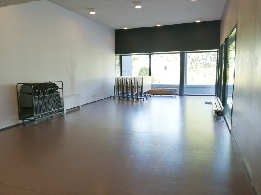 - Salle de 333 m² avec une pièce annexe (salle de réunion) de 70 m² (capacité personnes assises : 80 disposition spectacle, 60 avec tables) .